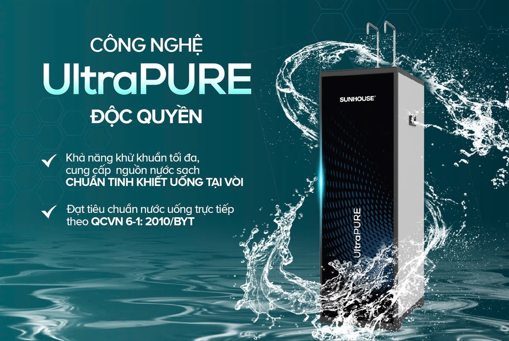 Công nghệ UltraPURE là công nghệ độc quyền của SUNHOUSE và được ứng dụng trong dòng sản phẩm máy lọc nước thế hệ mới. Nhờ có hệ thống lọc đa tầng bao gồm các cấp lọc thô – lọc tinh – lọc bù khoáng được ứng dụng công nghệ UltraPURE, nước sau lọc luôn sạch vi khuẩn, tạp chất, ion kim loại nặng, amip, asen... và được bổ sung đầy đủ khoáng chất thiết yếu cho cơ thể.
