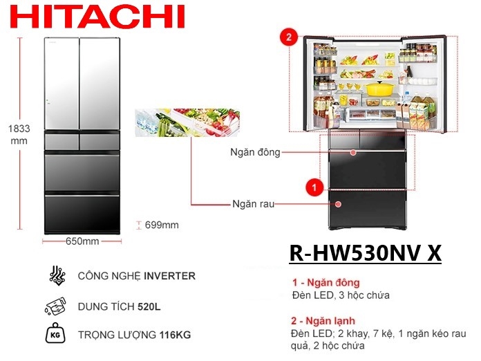 Ngăn Chân Không Vacuum Compartment là sự đột phá trong công nghệ của Hitachi mang đến khả năng bảo quản thực phẩm tối ưu. Với cấu trúc ngăn trữ hoàn toàn kín khí, chịu được áp suất ở ngưỡng 0,8 atm (áp suất khí quyển) nhờ máy bơm chân không hút không khí và giảm lượng oxy (nguyên nhân tạo nên hiện tượng oxy hóa gây mất chất) trong suốt quá trình sử dụng.