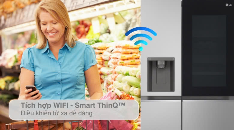 - Tích hợp WIFI - Smart ThinQ™: kết nối tủ lạnh với điện thoại thông minh, tiện theo dõi và điều khiển tủ lạnh từ xa.