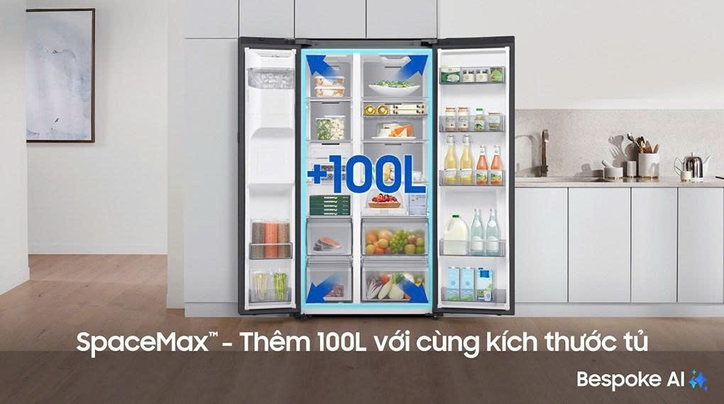 SpaceMax là công nghệ độc đáo có trên tủ lạnh Samsung RS70F65K2FSV giúp mở rộng không gian lưu trữ thực phẩm. Nhờ sở hữu lớp vỏ mỏng với vật liệu cách nhiệt tiên tiến, người dùng sẽ có thêm diện tích để bảo quản thực phẩm nhưng đồng thời tủ lạnh vẫn giữ được vẻ ngoài gọn gàng và cả hiệu suất hoạt động.