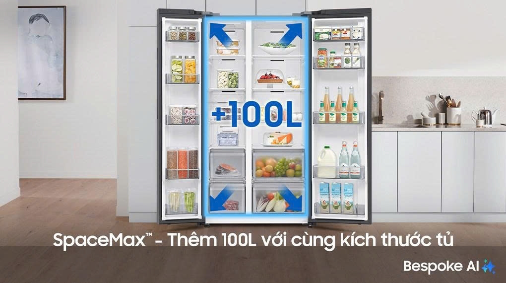 Công nghệ SpaceMax™ là bí quyết giúp RS70F65Q3FSV đạt dung tích 655 lít mà không làm tăng kích thước tổng thể. Lớp viền siêu mỏng sử dụng vật liệu cách nhiệt tiên tiến, mở rộng không gian bên trong để bạn thoải mái lưu trữ thực phẩm cho cả tuần, từ rau củ, thịt cá đến đồ uống. Các ngăn kệ linh hoạt, có thể điều chỉnh độ cao, cùng khay chứa lớn giúp bạn sắp xếp mọi thứ gọn gàng, dễ tìm kiếm. Đây là lựa chọn lý tưởng cho những gia đình đông người hoặc có thói quen mua sắm số lượng lớn.
