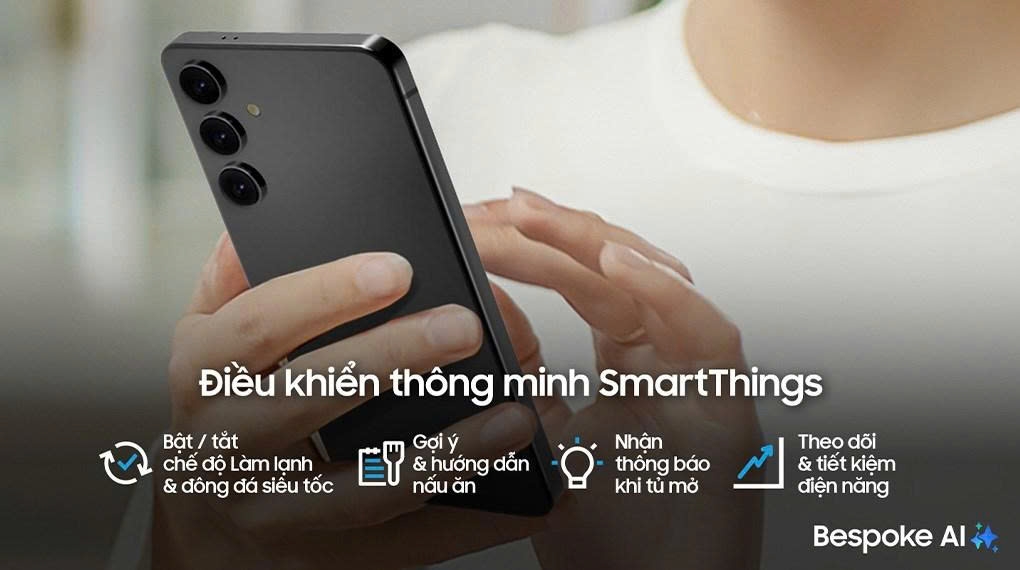 Bên cạnh đó. người dùng có thể dễ dàng điều khiển mọi lúc mọi nơi. Giờ đây chỉ cần kết nối tủ lạnh với Wi-Fi, bạn có thể sử dụng ứng dụng SmartThings để dễ dàng điều khiển các chế độ làm lạnh, thay đổi nhiệt độ và nhận thông báo khi quên đóng tủ.